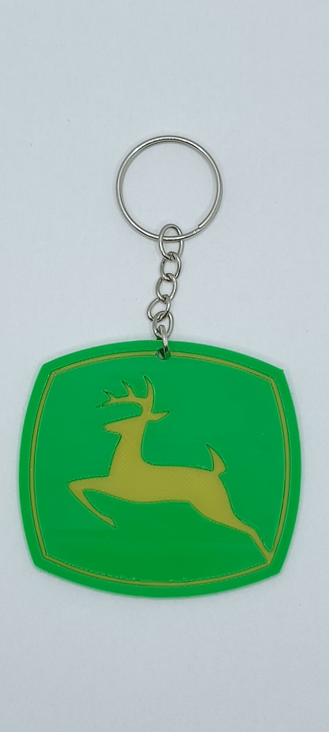 Brelok John Deere to praktyczna zawieszka do kluczy, wykonana z wysokiej jakości materiałów, cechująca się solidnym wykonaniem.